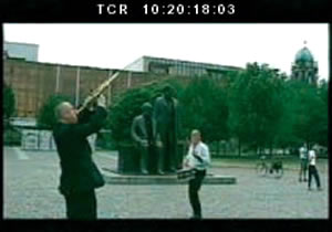 Der Regisseur Jürgen Böttcher wurde 1981 vom DEFA-Studio für Dokumentarfilme beauftragt, die Entstehung der einzelnen Kunstwerke periodisch zu dokumentieren. Kameramann war Gunter Becher. Frank Löprich war als Produktionsleiter für diese Dokumentation verantwortlich. So wurden in den Jahren 1981 - 1986 jährlich 2.000 - 3.000 Meter 35-mm-Film für einen großen Kinofilm gedreht, der nie zustande kam. Von der Idee 1974 bis zur Denkmal-Einweihung 1986 hatten sich die politischen Verhältnisse gewandelt. In der Sowjetunion war inzwischen Gorbatschow mit Glasnost und Perestroika an der Macht. Das wirkte sich auch auf die DDR aus. Spätestens seit der Präsentation des Modells zum "Marx-Engels-Forum" im Gebäude des Marstalls regte sich Widerspruch in der Bevölkerung sowohl über Art und Weise der Gestaltung als auch über den Standort. Als die Wiese hinter dem Palast der Republik abgetragen und für die Denkmalanlage planiert und gepflastert wurde, wuchs der Unmut. Die Einweihung am Vorabend des letzten Parteitags der SED quittierten die Berliner mit Gleichgültigkeit. Damit erlosch bei den Auftraggebern das Interesse an einem repräsentativen Film. Das angelegte Filmmaterial wurde bis zum Ende des DEFA-Dokumentarfilmstudios im fünften Stock der Otto-Nuschke-Straße 32 gelagert und später in das Bundesfilmarchiv überführt. Deutsche Geschichte vom Kaiserreich über die Weimarer Republik, das Dritte Reich, die DDR bis hin zur Bundesrepublik wird an keiner Stelle Berlins so anschaulich wie an diesem zentralen Platz in der Mitte Berlins und seinen angrenzenden Gebäuden. Der Film "Konzert im Freien" wurde auf der "Berlinale 2001" uraufgeführt und mit dem Preis für den besten Dokumentarfilm ausgezeichnet. |