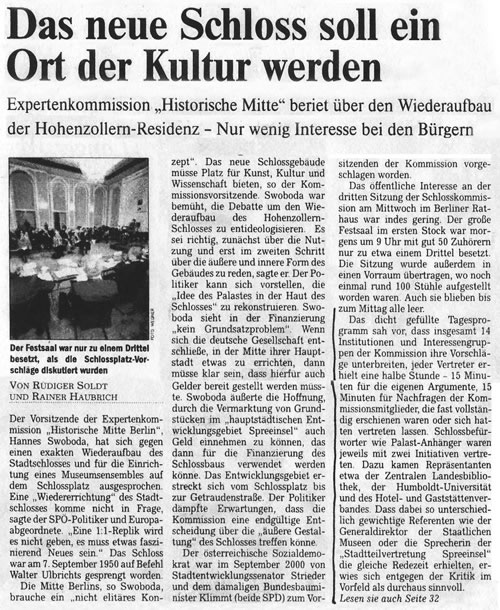 Expertenkommission "Historische Mitte" beriet über den Wiederaufbau der Hohenzollern-Residenz - Nur wenig Interesse bei den Bürgern |