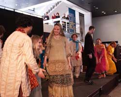 Dieses grandiose Feuerwerk der Tänzer und Musiker in den Dahlemer Museen wurde unterstützt und ermöglicht vom Verein der Freunde des Ethnologischen Museums, dessen Vorsitzender, Dr. Volker Hassemer, die zahlreichen Gäste herzlich begrüßte. Daniela Schadt eröffnete am Abend gutgelaunt die Modenschau der afghanischen Designerin Laila Noor unter dem Motto „Bildung für Afghanistan“mit einer frauenpolitisch relevanten Rede.