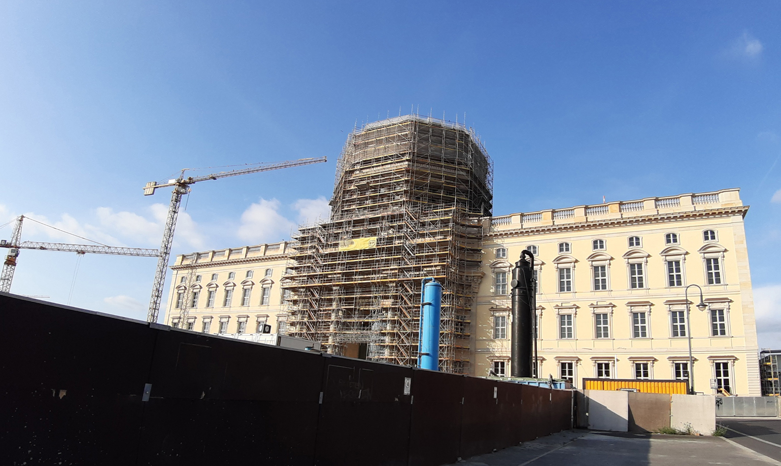 Moderne Stadtentwicklung in Berlin-Mitte | Fetzen flattern im Sommerwind Die Bauakademie von Karl Friedrich Schinkel! |