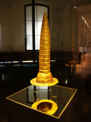 Der dritte Blickpunkt: Seit der Steinzeit wollten die Menschen den Rhythmus der Natur verstehen und nutzen. Ein besonders beeindruckendes Zeugnis astronomischer Kenntnisse ist der in Hinsicht auf Größe und Erhaltungszustand einzigartige, aus Gold getriebene bronzezeitliche Zeremonialhut. Die Stempeleindrücke auf dem fast papierdünn ausgetriebenen Goldblech weisen Bezüge zu Himmelskörpern auf. Die Sonne, an die die Goldfärbung und das Strahlen-muster auf der Spitze als Erstes erinnern, bewirkt durch ihren scheinbaren Umlauf Tag und Nacht sowie die Jahreszeiten. Der Mond, vielfach auf dem Hut dargestellt, erlaubt die Unterteilung in Monate und Wochen. Anordnung und Zahl der Ornamente ist nicht zufällig, denn sie erlaubt Berechnungen des 19-jährigen Sonne-Mondzyklus mit 228 Sonnen- bzw. 235 Mondmonaten. Wer dieses Ornament zu deuten verstand, konnte die kalendarischen Verschiebungen zwischen Sonnen- und Mondjahr berechnen, Mondfinster-nisse voraussagen und Festtermine bestimmen.